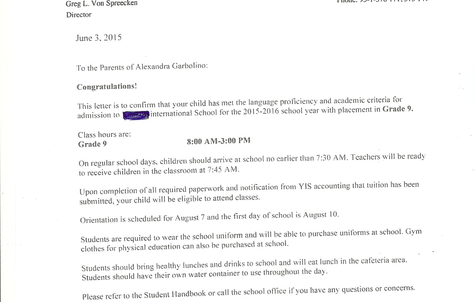 ျပန္စာရၿပီး ႏွစ္ပတ္အၾကာ မိသားစုေတြအတူထိုင္စကားေျပာေနတုန္း ဖုန္းသံျမည္လို္႔ဖြင့္ၾကည့္တဲ့အခါ ေက်ာင္းကအီးေမးလ္ျဖစ္ေနတယ္... ဒါဟာ ဝင္ခြင့္ရလာဒ္ဆိုတာ တန္းသိလိုက္ပါတယ္... စာဖတ္အၿပီးမွာ သမီးဝင္ခြင့္ရၿပီ ေက်ာင္းအပ္လို႔ရၿပီလို႔ ေျပာလိုက္ေတာ့ အိုေက လို႔ဘဲတခြန္းျပန္ေျပာတယ္... ဒါနဲ႔က်မက သမီးသူငယ္ခ်င္းလိုလဲထမခုန္ပါလားဆိုေတာ့ သူကသိၿပီးသားဆိုဘဲ... ၿပီးေတာ့ ေျပာလိုက္ေသးတယ္...